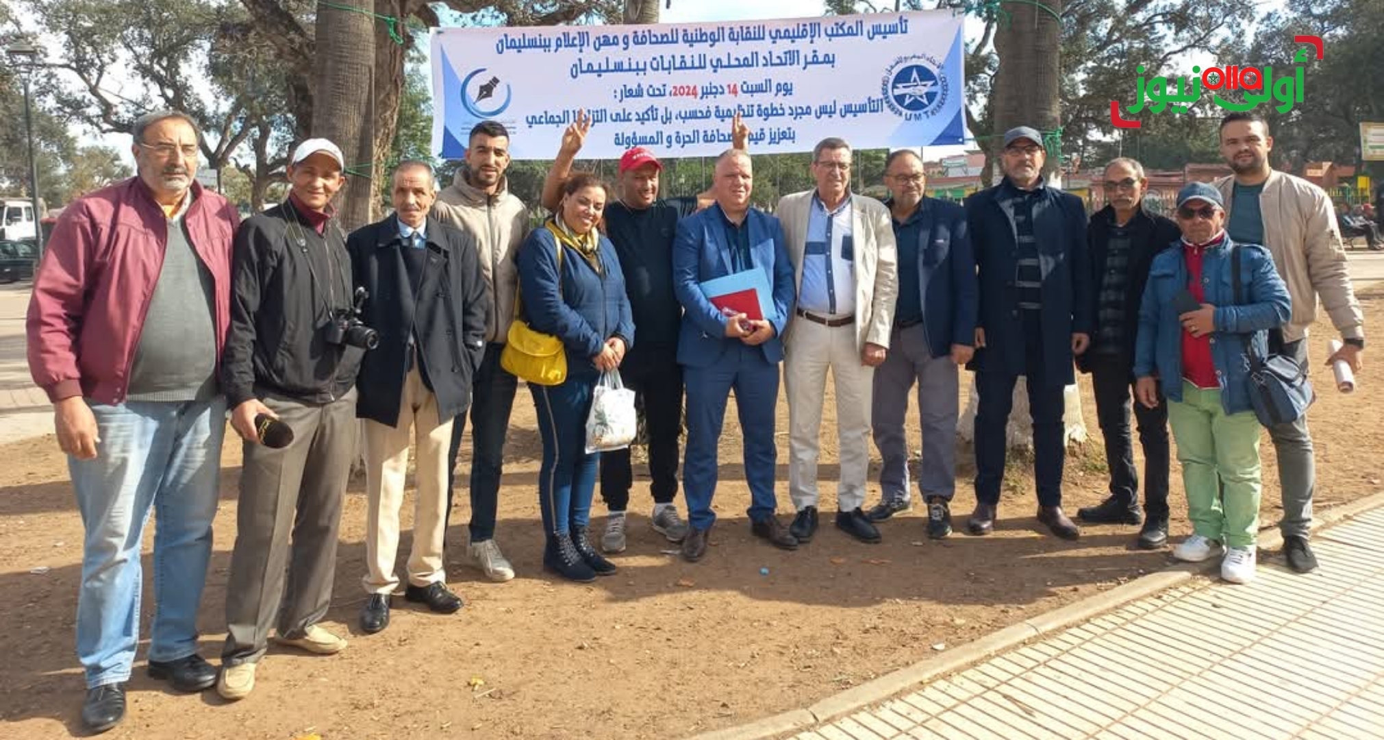 انعقد صباح يومه السبت 14 دسمبر 2024بمقر الاتحاد المغربي للشغل على الساعة الحادية عشر صباحا، الجمع العام التأسيسي للمكتب الإقليمي للنقابة الوطنية للصحافة ومهن الإعلام ببنسليمان، بحضور عضو المكتب الوطني رضوان المنفلوطي ، والكاتب الوطني توفيق ناديري و المنسق الوطني عز الدين البورقادي و ذ. الكاتب و الصحفي بوشعيب الحمراوي عضو شرفي بالنقابة الوطنية للشغل و السيد بوشعيب شروقي عضو المكتب الاقليمي ممثلا للمكتب المحلي للاتحاد المغربي للشغل.