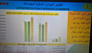 جدير بالذكر أنه تم تقديم العديد من الانجازات بحصيلة الولاية الحالية و واهمها كهربة بعض الاحياء وتبليطها ،وربطها بالماء الصالح للشرب و الربط بشبكة تطهير السائل ، وتخليص بعض الوداديات من القيود و العراقيل كما ذكر رئيس الجماعة بمنحة النجاعة و التميز التصاعدي من وزارة الداخلية حيث قفز مبلغ المنحة780 170 مليون سنتيم سنة 2021 الى 633 سنة 2022 الى 780 سنة 2023 ليبلغ قيمة 860 مليون سنتيم سنة 2024 وهي نتائج تبرز النجاعة في التسيير و التدبير المحكم من طرف الجماعة ،