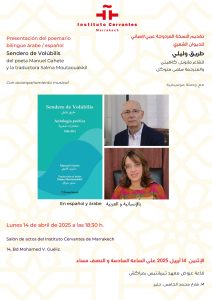 يقدم معهد ثيربانتيس بمراكش النسخة المزدوجة إسباني/عربي، للديوان الشعري “طريق وليلي” وترجمته إلى اللغة العربية، وذلك في لقاء مباشر مع الشاعر الإسباني المعاصر مانويل كاهيتي والأستاذة والمترجمة المغربية سلمى متوكل، يوم الإثنين 14 أبريل 2025 على الساعة السادسة و النصف مساء.
