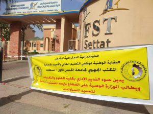 نظمت النقابة الوطنية لموظفي التعليم العالي والأحياء الجامعية، المنضوية تحت لواء الكونفدرالية الديمقراطية للشغل، يوم الخميس 24 يوليوز 2025، وقفة احتجاجية إنذارية أمام كلية العلوم والتقنيات بسطات، تزامنًا مع حفل التخرج، احتجاجًا على ما وصفته بـ”الاختلالات البنيوية والتجاوزات الإدارية المتفاقمة داخل الكلية”.