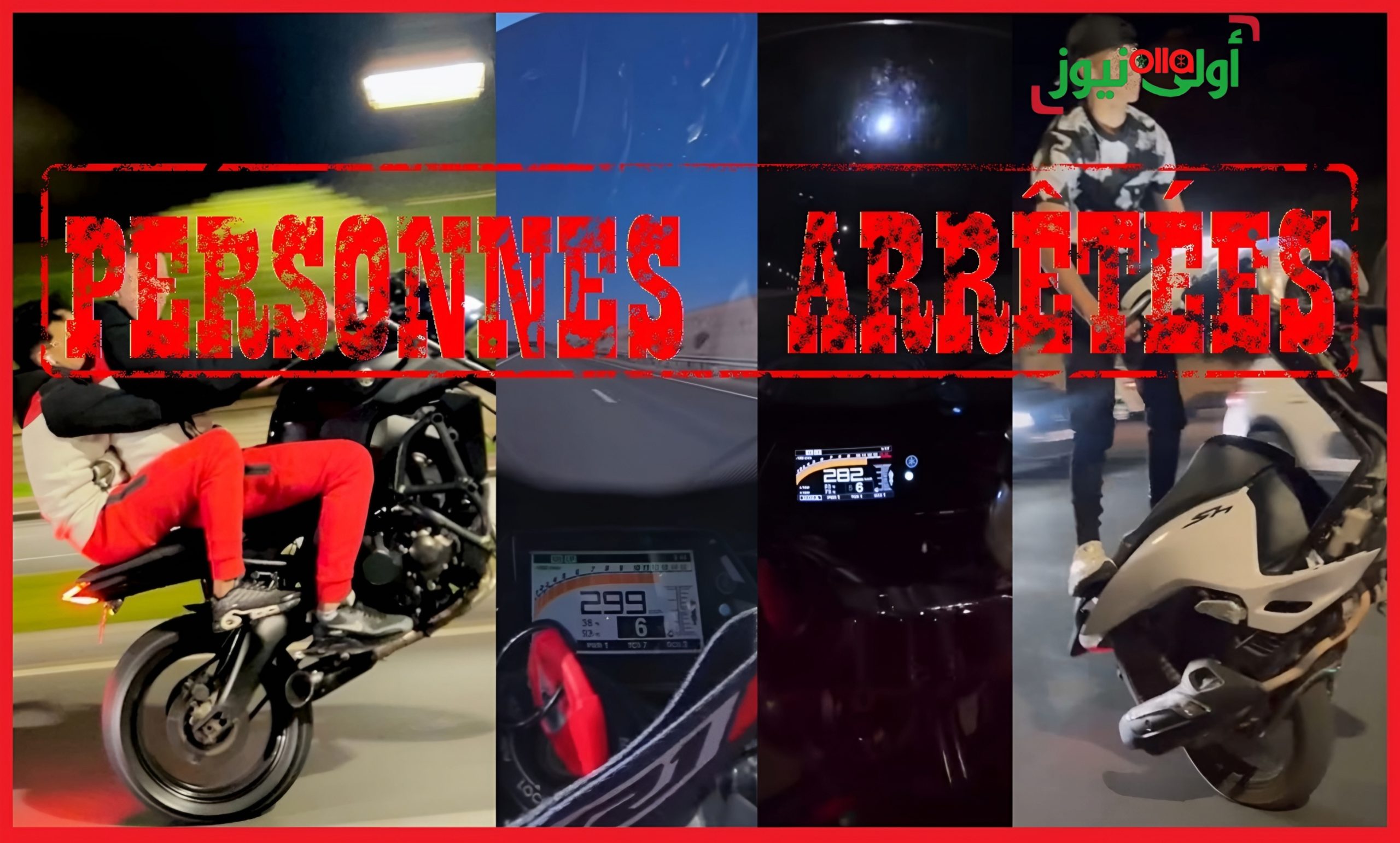 وكانت مصالح الشرطة قد رصدت شرائط فيديو منشورة على مواقع التواصل الاجتماعي، يظهر فيها مجموعة من الأشخاص يقودون دراجات نارية بسرعة مفرطة وبطريقة استعراضية وخطيرة بالشارع العام، حيث أسفرت الأبحاث والتحريات المنجزة أول الأمر عن توقيف اثنين من بين المشتبه فيهم يوم أمس الاثنين، وذلك قبل أن يتم إخضاعهما لبحث القضائي الذي أمرت به النيابة العامة المختصة.