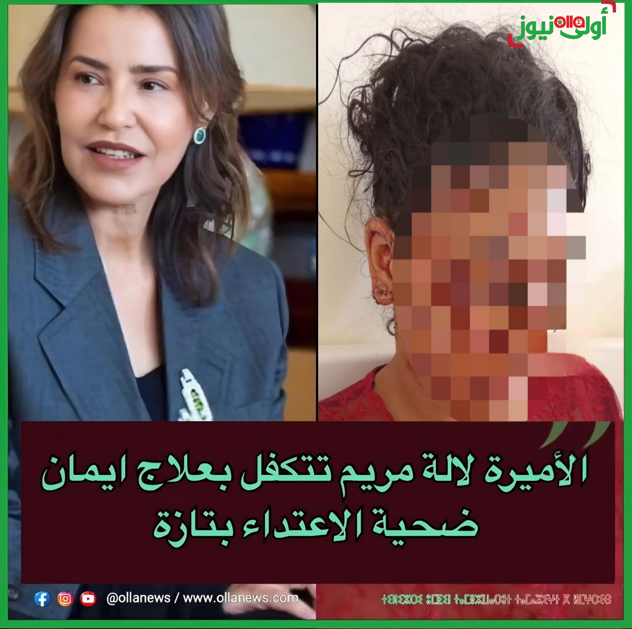 بأمرٍ من صاحبة السمو الملكي الأميرة الجليلة لالة مريم، رئيسة الاتحاد الوطني لنساء المغرب، تكفّل الاتحاد بالسيدة إيمان، ضحية الاعتداء اللاإنساني والتشويه الشنيع بمدينة تازة.