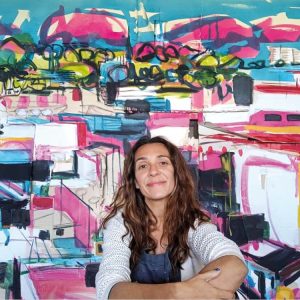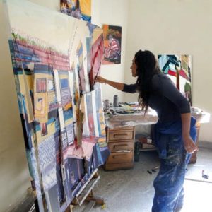 تقول الفنانة: «طنجة راسخة في وجداني منذ صغري». هذه المدينة المضيئة تسكن كل لوحاتها: أسطح المدينة القديمة، رائحة البحر، أصوات الطفولة وذكرياتها. وتظهر في أعمالها أيضاً مدن أخرى مثل باريس ومدريد وسريلانكا وتولوز، كأنها مراحل من رحلة تنتهي دائماً، كما تقول، بالعودة إلى طنجة.