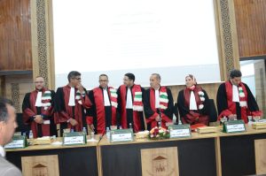 وقد تميزت المناقشة بمستوى علمي رفيع، حيث ناقشت اللجنة الباحث في مختلف الجوانب النظرية والمنهجية والعملية لموضوع الأطروحة، وأشادت بجهوده البحثية وبقيمة الموضوع الذي يلامس جوهر استقلال السلطة القضائية وضمانات المحاكمة العادلة.