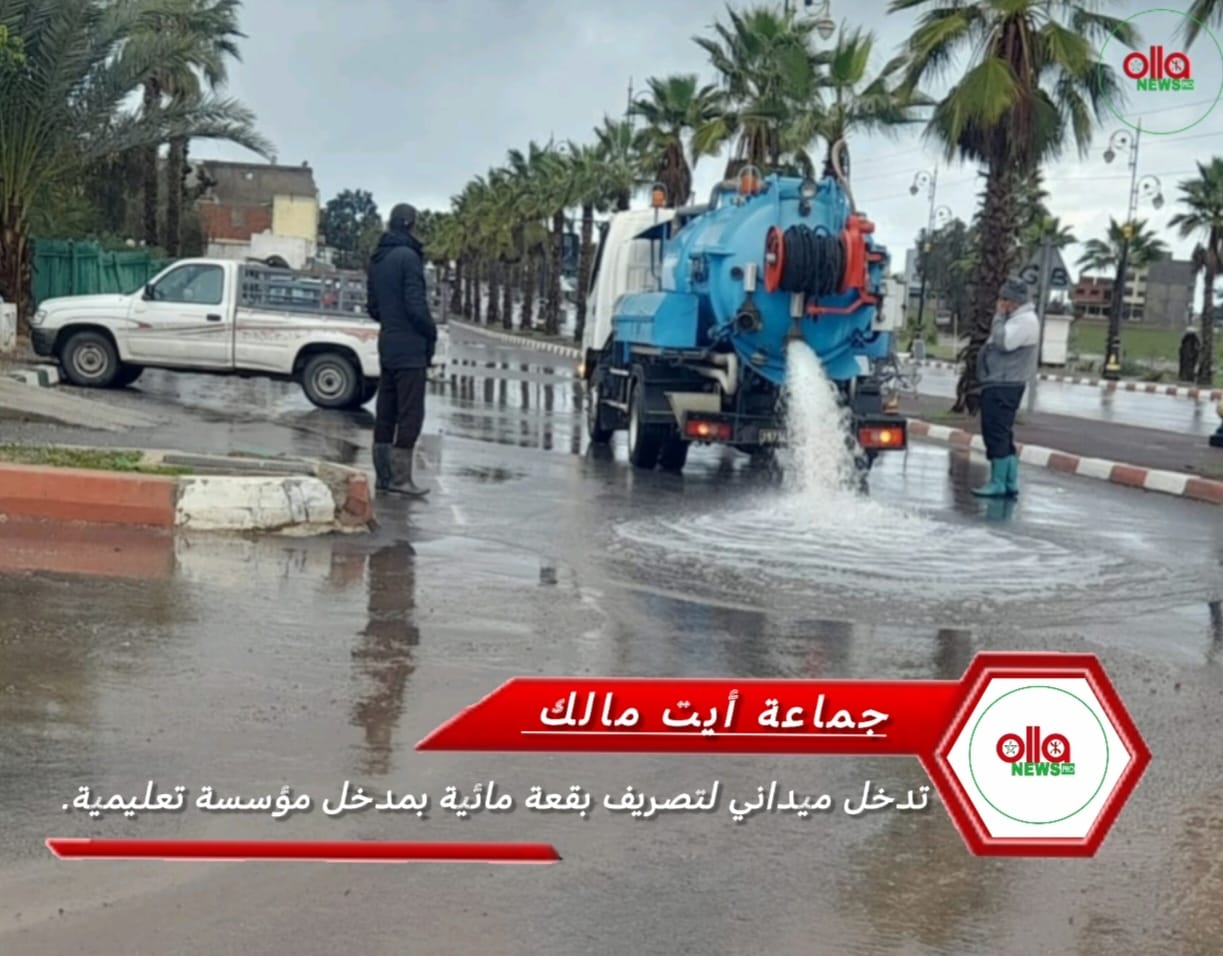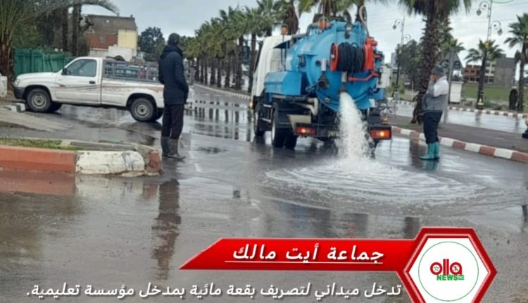 تدخل ميداني لتصريف بقعة مائية بمدخل مؤسسة تعليمية بجماعة أيت مالك.