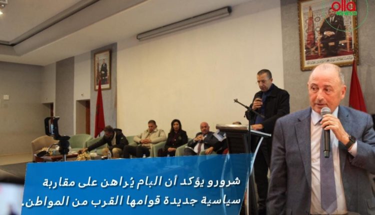 وافتتح اللقاء التواصلي السيد محمد شرورو ، بكلمة ترحيبية بالقيادة الحزبية بالجهة، وخصوصا مناضلات ومناضلي الحزب الحاضرين، مشيرا على أن المقاربة تقوم على التنسيق المحكم بين مختلف المتدخلين، من جماعات ترابية ومجلس إقليمي ومجلس جهوي وقطاعات حكومية، بما يضمن نجاعة تنزيل المشاريع المهيكلة، خاصة تلك المتعلقة بتهيئة مراكز الجماعات، وتعزيز البنيات التحتية من طرق ومسالك، وفق تصور يراعي التوازن المجالي ويكرّس مبدأ الإنصاف في توزيع الاستثمارات العمومية.
