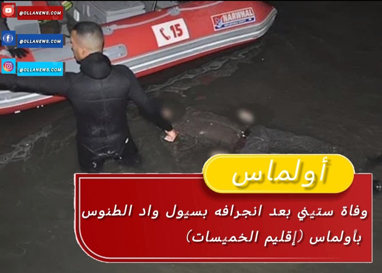 تم انتشال جثة رجل في الستينات من عمره بعد أن جرفته سيول وادي الطنوس بمنطقة أولماس التابعة لإقليم الخميسات، نتيجة ارتفاع منسوب المياه إثر التساقطات المطرية الأخيرة التي شهدتها المنطقة.