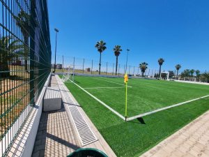 أما فيما يخص تقدم الأشغال بالمشروع فقد اكتملت تجهیزات الملعب الأول بالكامل بعد تغطية أرضيته بعشب اصطناعي عالي الجودة يتماشى مع المعايير الحديثة. بالإضافة إلى ذلك جرى تركيب المعدات المحيطة بالملعب، بما في ذلك السياج الوقائي وأعمدة الإنارة مما يتيح استخدامه خلال الفترات المسائية. وفي ما يخص الملعب الثاني فقد وصلت نسبة إنجاز أعماله إلى حوالي %95، مع توقع اكتمال كافة تفاصيل المشروع قريباً.